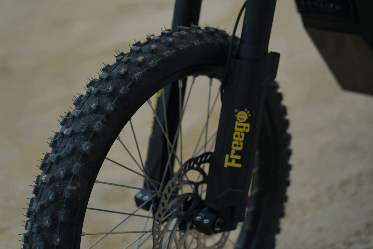 Rugged 19” Front / 18” Rear MTB-style tires, delivering exceptional traction and stability across rough terrain and trail environments.