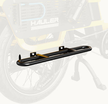 The accessories for Hauler are a rear rack, two foldable footboards, and some small parts. No bag or child seat.