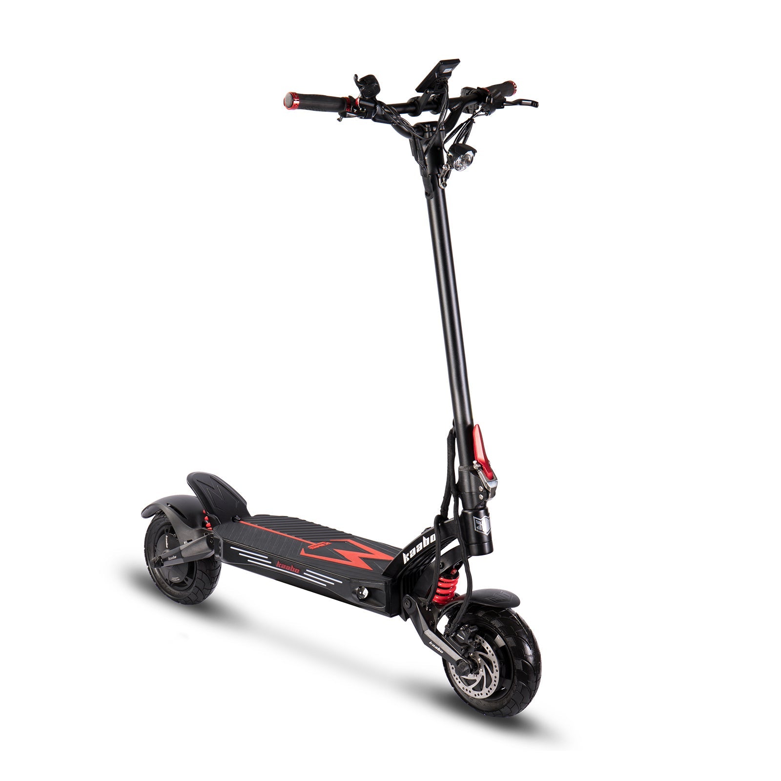 Master every terrain with the Kaabo Mantis King GT, crafted for unparalleled versatility. Equipped with dual 1100W motors, it boasts an exhilarating top speed of 43 mph, complemented by a robust 60V24Ah battery that offers an extensive 56-mile range. Its prowess extends to steep 30-degree inclines and challenging terrains, thanks to the resilient all-terrain tires. The Mantis King GT seamlessly merges speed, strength, and sustainability, emerging as the ideal choice for both adventurous off-road escapades and efficient city commutes.