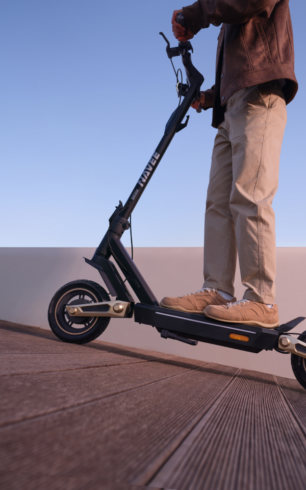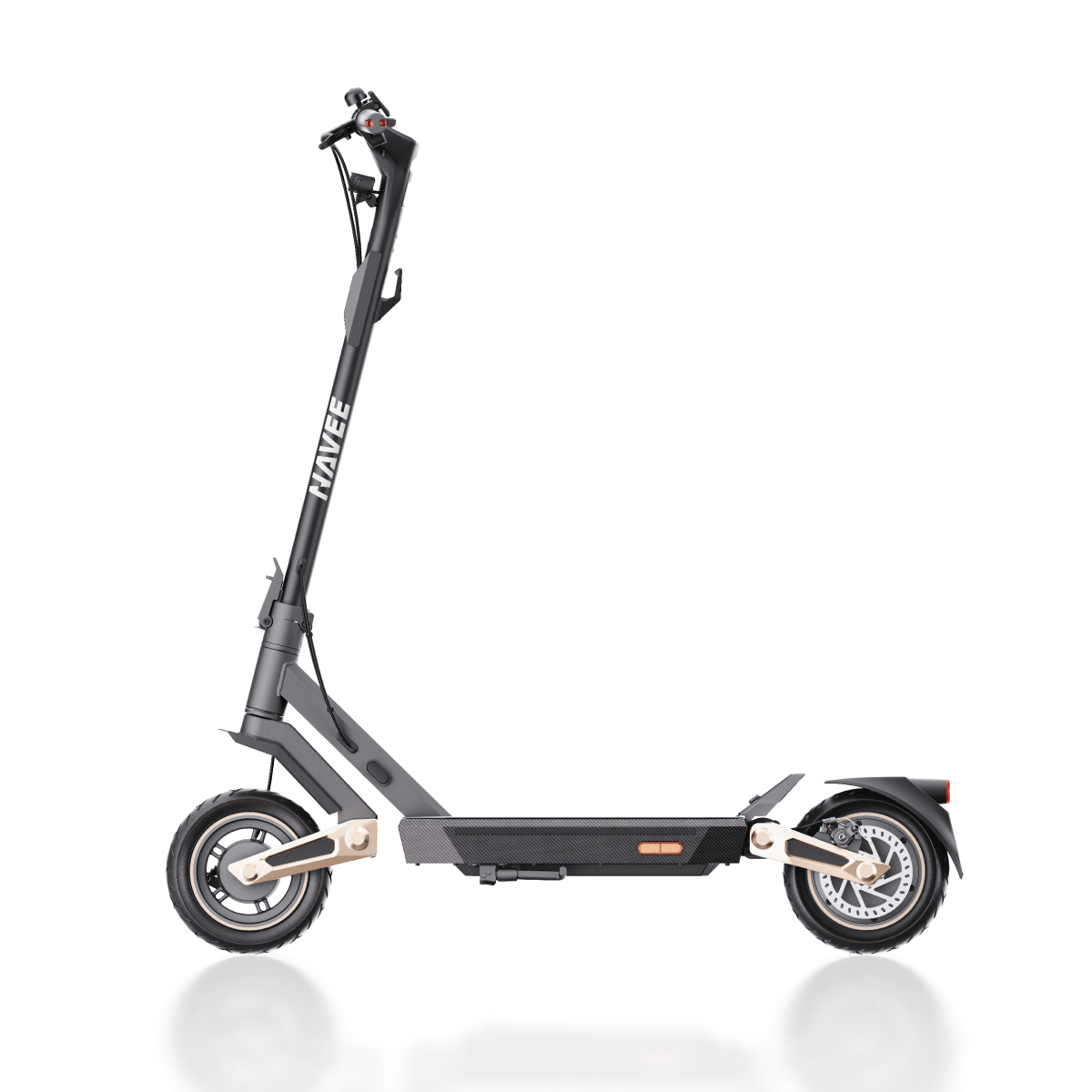 The NAVEE ST3 is equipped with front and rear suspension that absorbs bumps and uneven surfaces for a smoother, more controlled ride on city streets and paved paths.