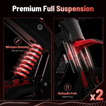 Equipped with a high-performance electric motor, the IN-10 offers a top speed of up to approximately 40 mph, making it suitable for a wide range of off-road applications. Its lithium battery provides a riding range of up to 50 miles under optimal conditions, with a charging time of approximately 5–6 hours. A front and rear suspension system helps absorb bumps on uneven terrain, while hydraulic disc brakes provide consistent and confident stopping power.